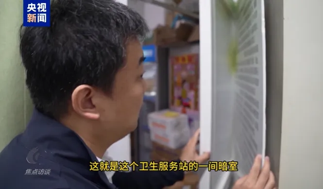 在这家卫生服务站的配药室,央视记者也发现了一间暗室,同样存满了来源不明的药品和耗材。