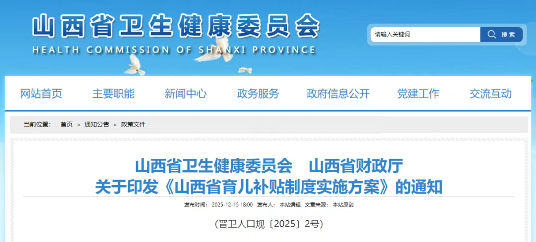 育儿补贴制度是国家为支持家庭抚育婴幼儿,降低生育养育成本,由中央和地方财政安排资金,对符合条件的婴幼儿按照一定标准发放补贴的基本制度。为贯彻落实中共中央办公厅、国务院办公厅《关于印发〈育儿补贴制度实施方案〉的通知》(厅字〔2025〕15号),结合山西省实际,省卫生健康委、省财政厅印发《山西省育儿补贴制度实施方案》,从补贴对象、标准、申领程序、资金来源、补贴发放、管理监督等方面对全省育儿补贴制度进行了规定。