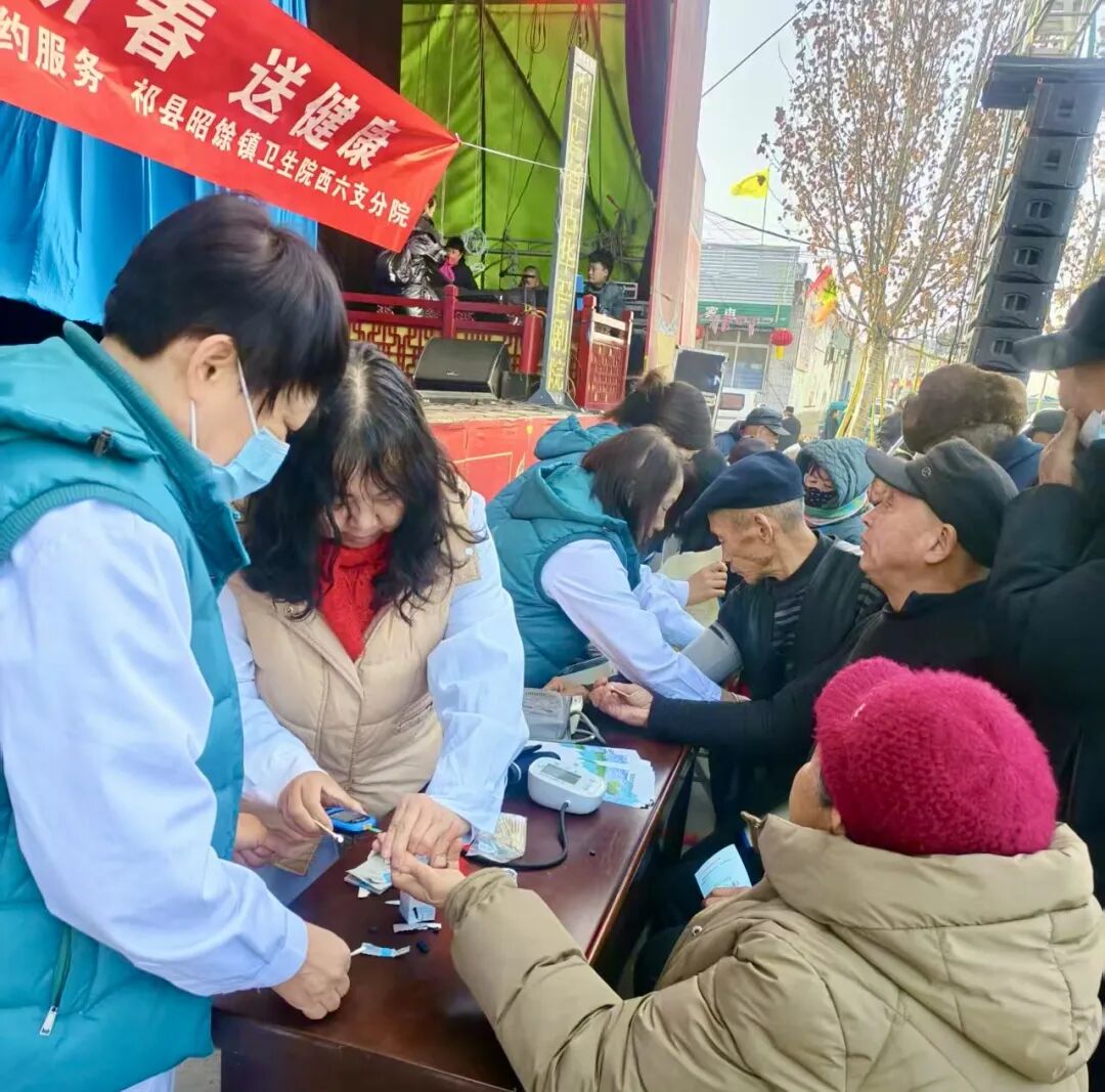 2026年农历正月初四,祁县西六支村的传统年集上,一份特殊的“健康年货”成了村民争相领取的新春福礼。祁县昭馀镇卫生院西六支分院的家庭医生团队在市集一角摆开了特别的“健康年货摊”,用暖心服务为节日添上一抹亮色。