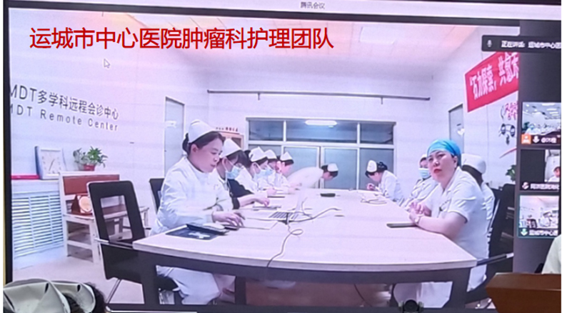 本次查房采用线上、线下相结合的方式同步进行。华中科技大学同济医学院附属同济医院消化系统肿瘤科黄钦护士长、运城市中心医院肿瘤科程凌倩护士长受邀在线上参加活动。山西白求恩医院 同济山西医院肿瘤中心总护士长武丽华与淋巴肿瘤科全体护士参与现场查房。淋巴肿瘤科N2级护士张文萍主持。