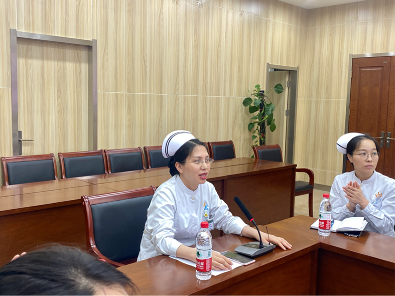 淋巴肿瘤科护理团队以患者为中心,实施责任制整体护理,运用护理程序提出患者治疗过程中存在的首优、中优、次优护理问题,针对性采取个体化的护理措施。刘秋梅护士和闫唯护士根据患者目前存在严重的呼吸困难,制定了防止患者发生窒息的护理目标,汇报了具体护理措施以及达到的护理效果。王涛护士和董庭庭护士对患者因巨大肿物压迫、吞咽困难导致营养不良的护理措施及达到的护理效果展开阐述,并对患者进行个性化的出院宣教,为患者提供全面、综合的护理服务。
