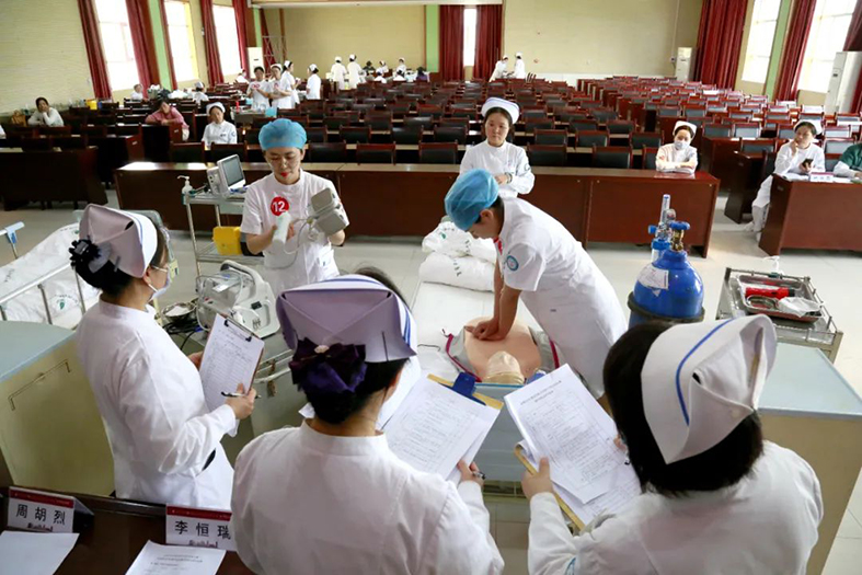 为全面提升基层医疗机构护理服务能力,保障医疗质量和患者安全,在观摩县直医院护士岗位技能竞赛和进行赛前集中培训的基础上,2023年4月28日,临猗县医疗集团举办乡镇卫生院护士岗位技能竞赛。