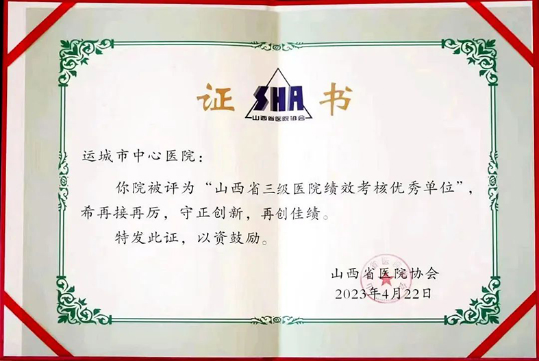 在大会开幕式上,山西省医院协会表彰了山西省三级医院绩效考核优秀单位和紧密型县域医共体建设典型单位,运城市中心医院荣获“山西省三级医院绩效考核优秀单位”荣誉称号。