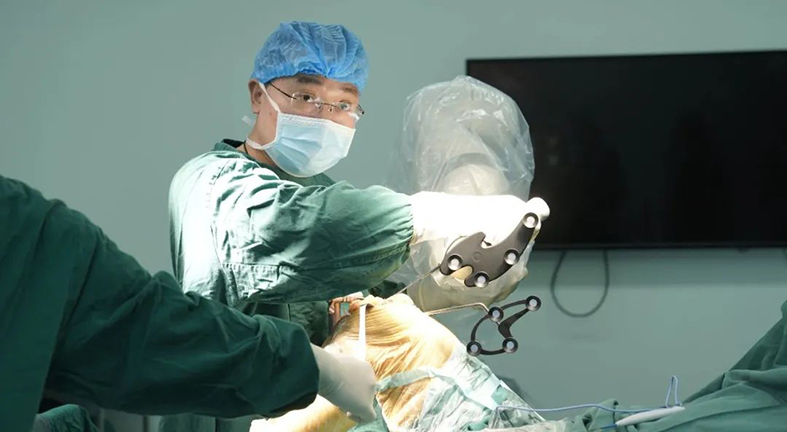 术中,刘军锋手持机械臂,精准地定位到预期规划位置,完成“毫米级”精准的截骨操作。王大爷术后恢复良好,第二天即可进行下地早期功能锻炼,出院时用“精、准、稳”3个字称赞手术机器人。