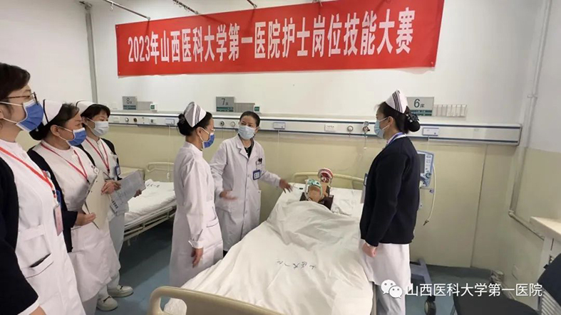 韩清华表示,在医院高质量发展的关键时期,护理人员用实际行动践行党的二十大精神,勤学苦练,夯实基本功。希望各位选手沉着冷静,超常发挥,赛出水平;各位评委公平公正,慧眼识才,为省级竞赛做好准备;广大护理人员以赛促学、以赛促练、以赛促教,全面提升山西医科大学第一医院护理工作。