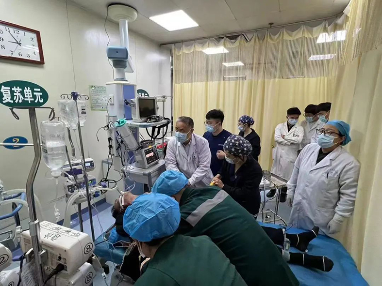 然而,患者在晚上病情突然转变,出现意识不清、呼吸衰竭症状。值班医生韩武朝迅速为患者落实一系列抢救措施,气管插管、呼吸机辅助通气等。经过急诊医护一夜的精心治疗和护理,第二天,患者呼吸衰竭纠正,生命体征逐渐平稳,转危为安。观察一天后,康复出院。