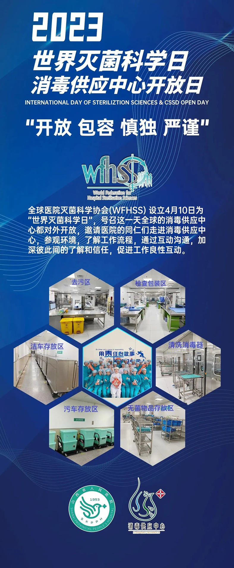 每年4月10日为“世界灭菌科学日”,灭菌科学世界联盟(WFHSS)号召全球的医院消毒供应中心在这一天对外开放,宣传器械再处理的全过程以及相关灭菌科学知识,通过现场参观、操作演练和互动沟通等,加深大家对消毒供应中心的了解,促进无菌物品供应和使用的安全性和有效性。