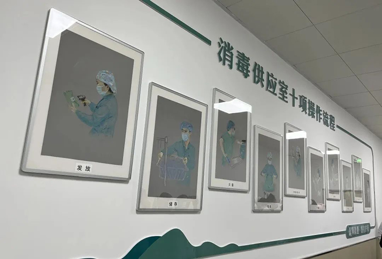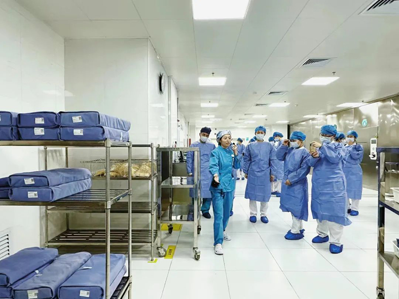 活动当日,到场嘉宾聆听“世界灭菌科学日”相关介绍,参观展板和照片墙,了解消毒供应室的建筑布局、发展历程和科室文化。走进去污区,了解消毒供应室的设备设施及工作流程,清洗及消毒原理;压力蒸汽灭菌器的使用情况及灭菌效果监测事宜;低温灭菌设备的使用;无菌物品的卸载及储存、发放;下送人员在领取、发放无菌物品环节的操作要求及细节管理;观看电动下送车的操作方法。