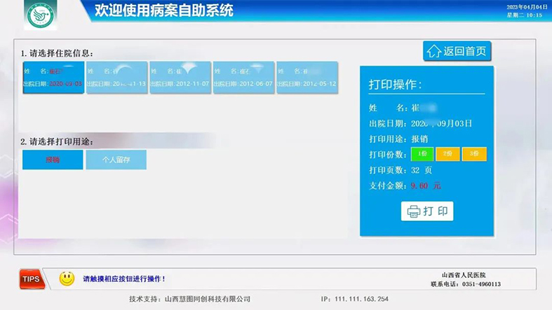 “病案自助打印真的太方便了,节约了窗口排队等候的时间,而且不受时间限制,随时都可以打印需要的病历资料,让人真正感受到了现代化的气息!” 患者张艳霞(化名)激动地说。