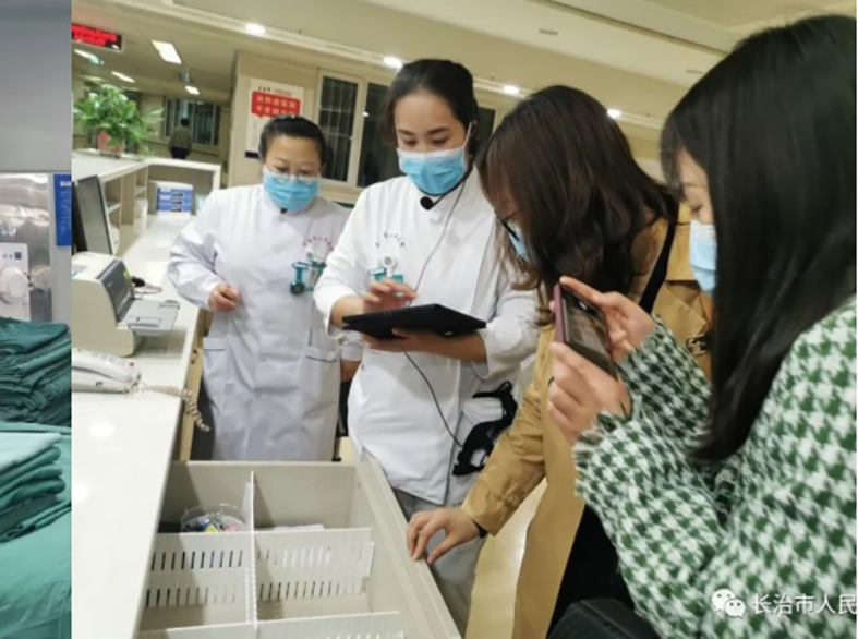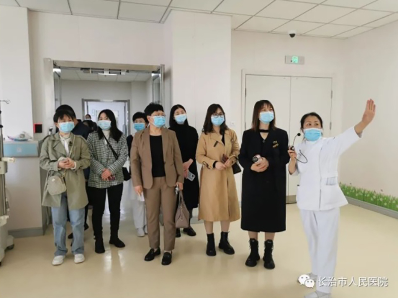 杜文飞一行参观了长治市人民医院呼吸与危重症医学科、创伤乳腺外科、关节脊柱外科、重症监护室、消毒供应中心和血液净化中心等科室。各科室护士长热情介绍本科室推进8S精益管理的具体做法、亮点和取得的成效,从病区功能区划分、各功能区内物品定位定量标识管理、病区文化建设、工作人员行为素质管理、护理创新等方面作了全方位的经验分享。