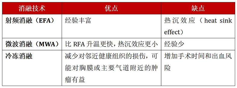 微波消融和已开展的冷冻消融、射频消融是目前治疗恶性肺肿瘤的三大消融技术,都是利用热效应原理,使肿瘤组织局部在几分钟内达到60-100℃的高温,达到“烧死”肿瘤细胞的目的,而对周围组织损伤极少。其中,应用最早和最广泛的是射频消融。微波消融相较于射频消融升温更快,热沉效应更小;同时经气管镜消融相较于传统的经胸壁穿刺消融更安全,气胸和出血的发生率更低,而且可以实现多病灶同时消融。