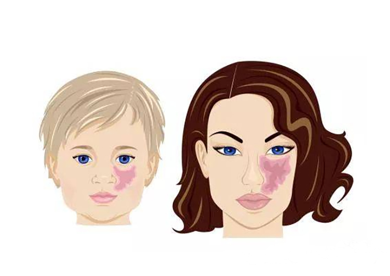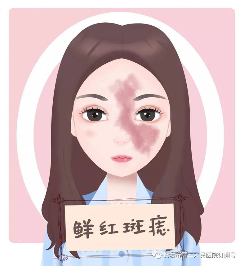 鲜红斑痣,又称葡萄酒色斑。是最常见的毛细血管畸形,属于先天性毛细血管发育不全。患儿常在出生时出现大小不等、边缘清楚的不规则红斑,不高出皮肤,表面光滑,压之褪色或稍褪色。