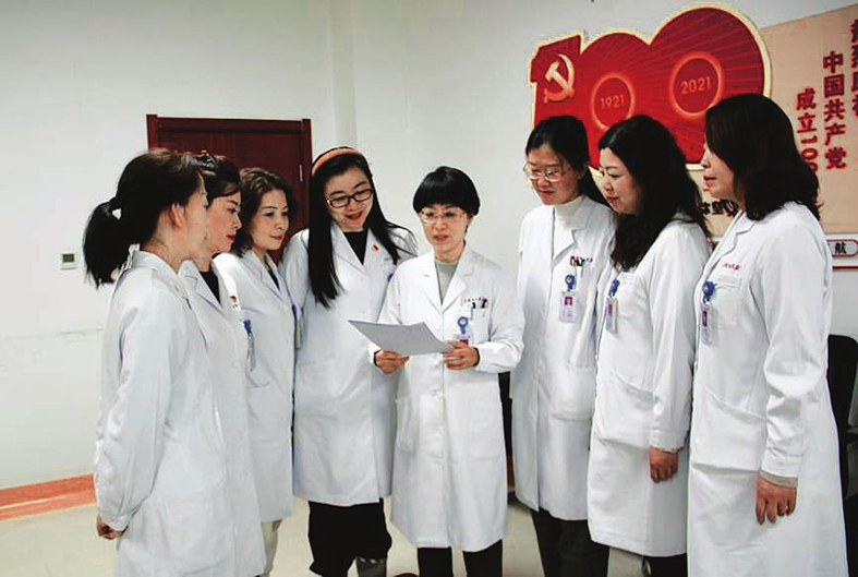 ▲王雅丽与大同市第三人民医院的医护人员分享两会精神。