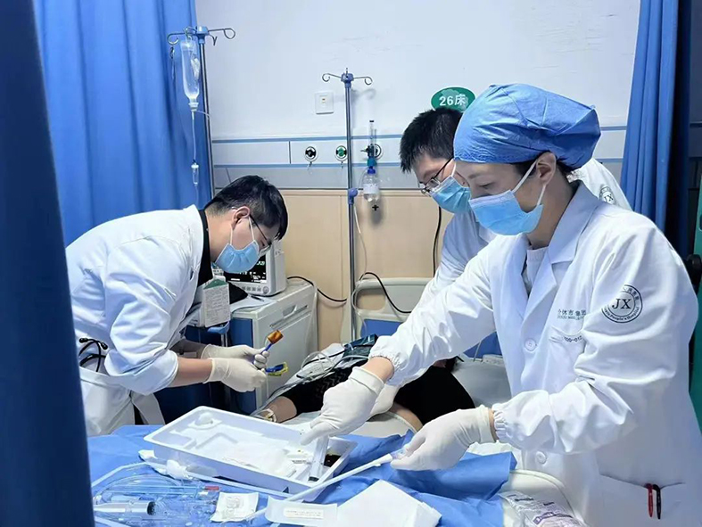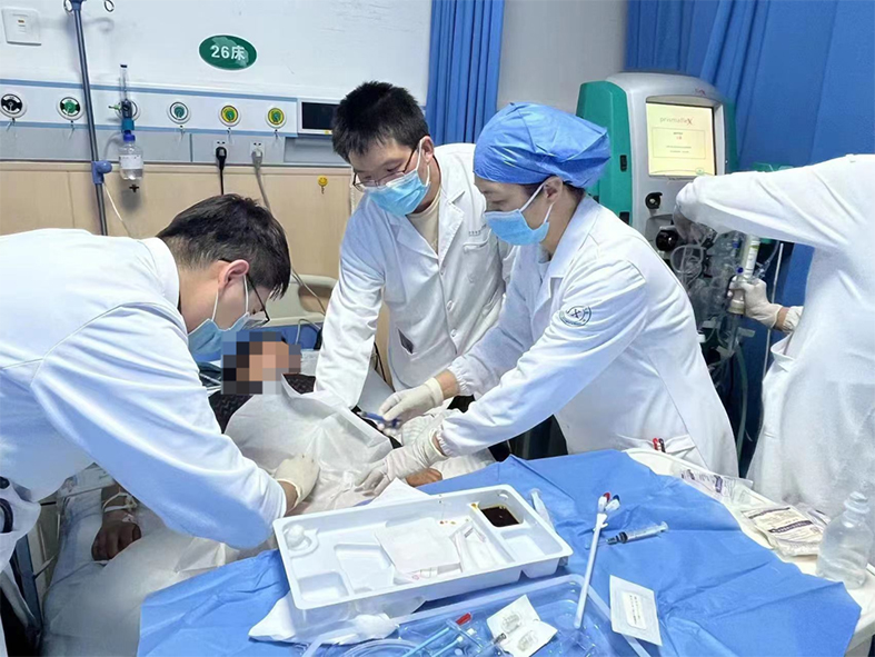 家属同意治疗方案后,蔺成云紧急联系透析室侯正义主任进行评估,当时已是22时。侯正义第一时间赶到医院,了解患者病情后,再次向患者交代血液透析的风险及注意事项,于22时30分请心内科张银医师为患者进行股动脉插管,展开床旁透析。透析室护士赵永丽、任雅妮和蔺成云一直在床旁观察患者病情变化,直到3月31日3时30分,透析顺利结束。