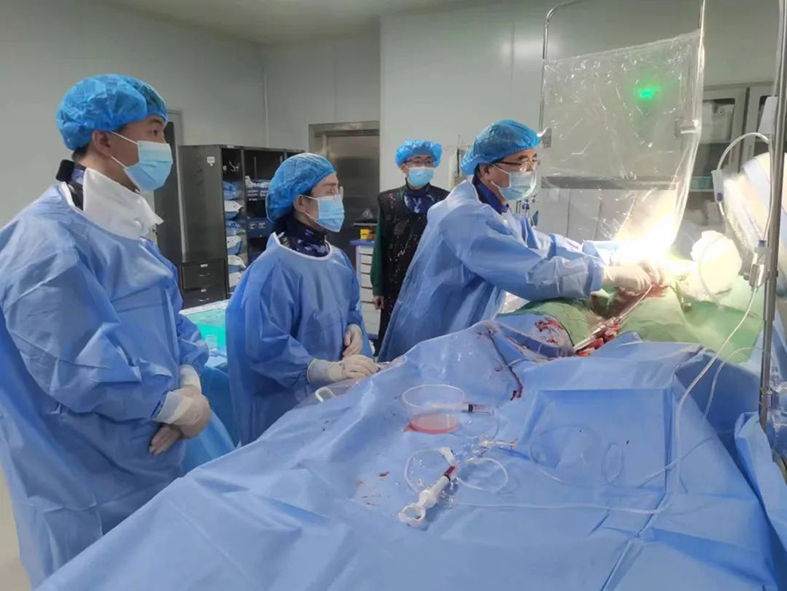 在手术麻醉科积极配合下,武振林带领介入团队经过2个多小时的努力,成功封堵患者主动脉夹层的破口,术后患者生命体征、各项指标稳定。
