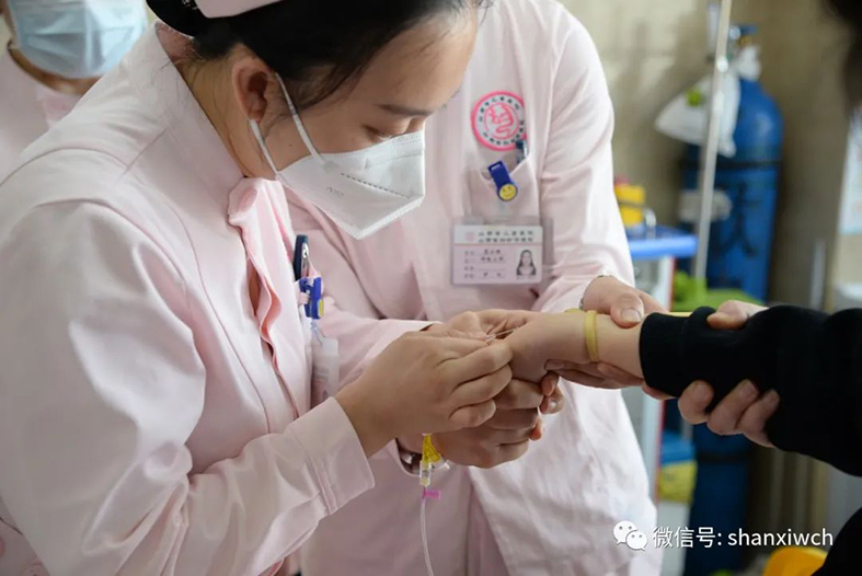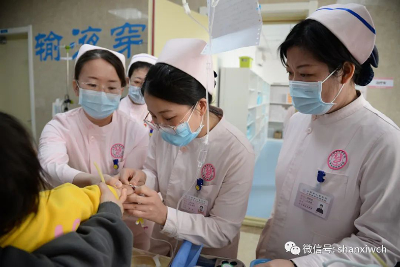 临床护理工作中,静脉输液已成为治疗疾病最主要的给药途径之一,小儿静脉留置针更是被誉为“针尖上的舞蹈”。由于患儿对刺入性治疗的天然畏惧,山西省儿童医院护理队伍持续精进操作技术,致力于改善患儿的就医感受,不断夯实技能操作,熟练规范流程,多形式、多渠道、全方位开展优质护理服务。