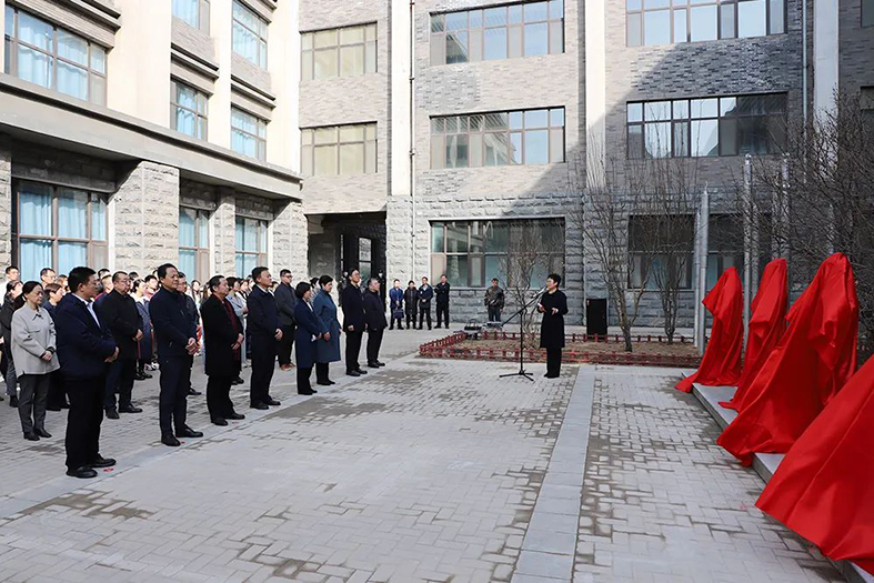 出席仪式的各位领导共同为中药柜和针灸铜人揭幕。