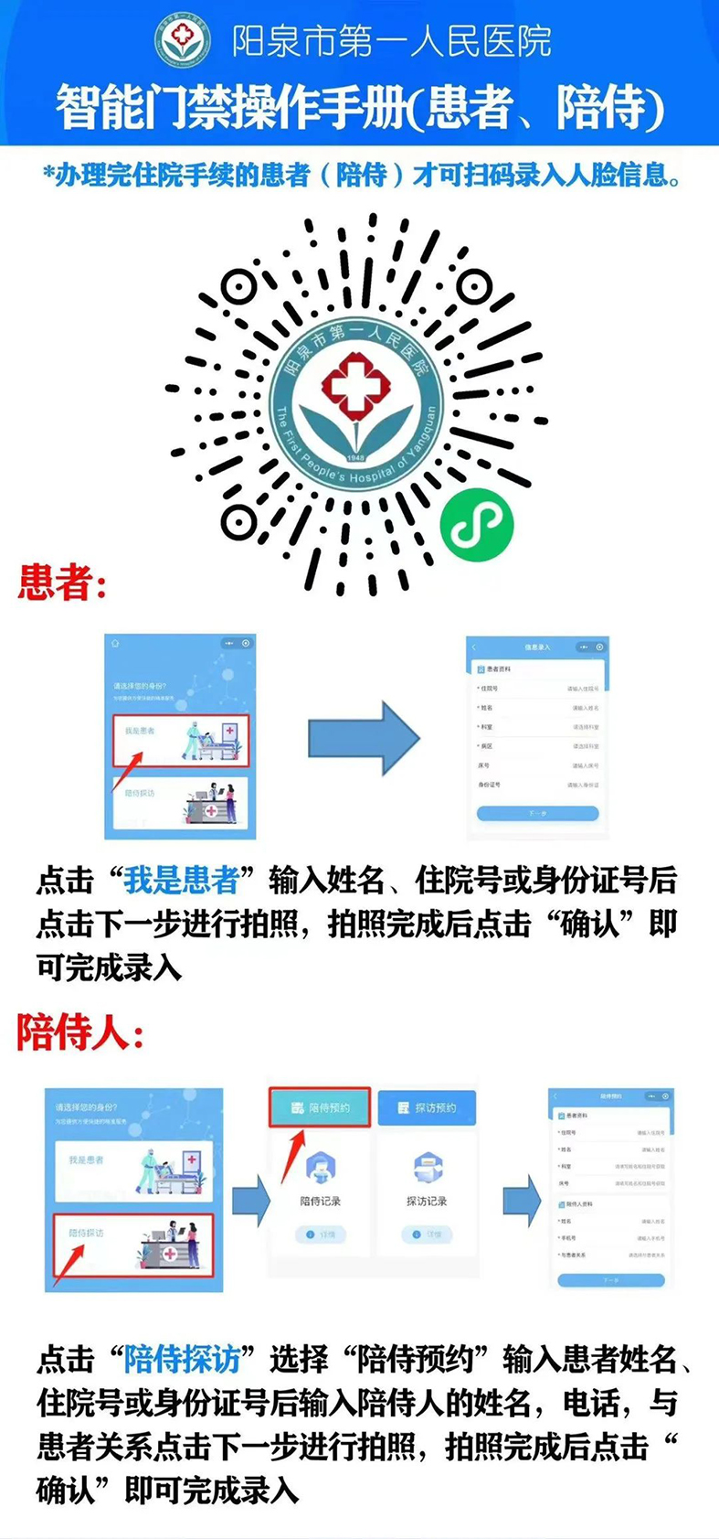 为最大限度保证患者安全,全面落实医院的陪护管理、探视制度,更好维护医疗秩序,日前,山西省医院协会理事单位——阳泉市第一人民医院安装数字化人脸识别闸机,并将于3月2日起正式启用数字化病区管理人脸识别系统。