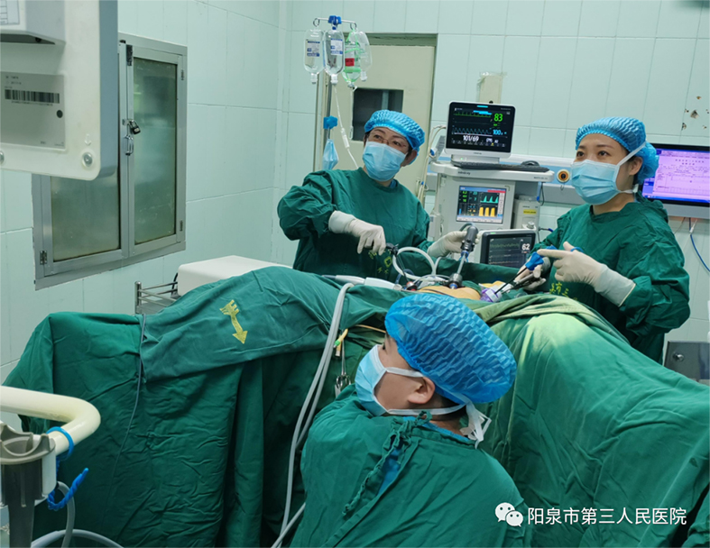 患者入院后,阳泉市第三人民医院妇产科主任马跃琴、妇科副主任赵欣梅及妇科医疗团队根据临床情况、子宫大小及形态,进行全面评估,为患者制定个性化手术方案,在手术麻醉团队的密切配合下为患者实施腹腔镜微创手术治疗。