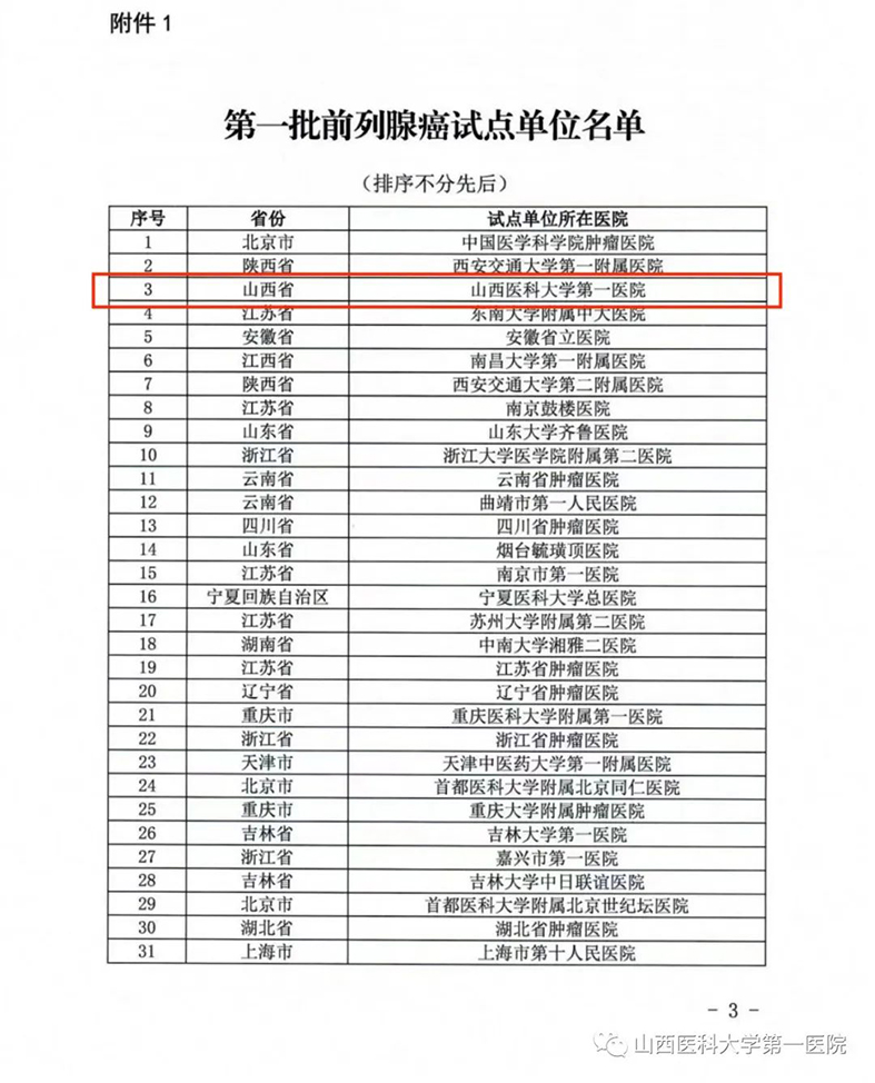 目前,国家癌症中心、国家肿瘤质控中心前列腺癌质控专家委员会公布全国首批前列腺癌规范诊疗质量控制试点单位遴选名单,山西省医院协会理事单位——山西医科大学第一医院泌尿外科跻身其中。这是继泌尿外科成为山西省泌尿外科专业质控中心后,赢得的又一块金色招牌。