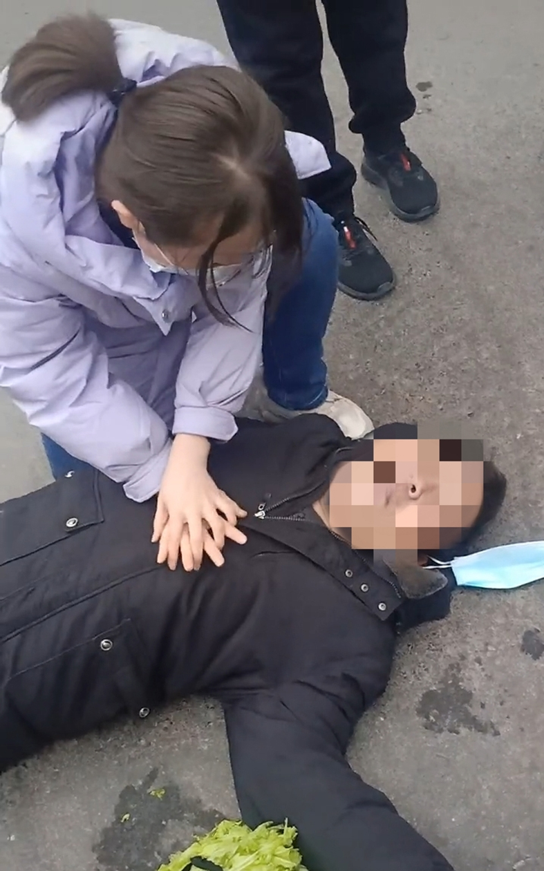 这要从2月8日在某平台上热传的一段视频说起。画面上,一名身穿紫色羽绒服、牛仔裤的姑娘,正在给昏厥在地的一位老人做心肺复苏。她一边施救一边大喊:“哪里难受,你快醒醒啊!”后又一边拨打120急救中心电话,一边判断老人的意识,触摸颈动脉,胸外心脏按压,观察瞳孔变化。所有急救动作专业一气呵成,并一直坚持到救护车和家属赶来。看着老人顺利转运,她才离开。