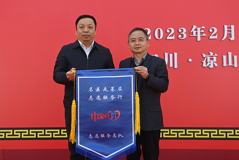 在数百名凉山群众的见证下,授旗仪式举行。一面旗帜,由中宣部志愿服务促进中心副主任张其胜郑重交到国家卫生健康委宣传司负责人米锋的手中。