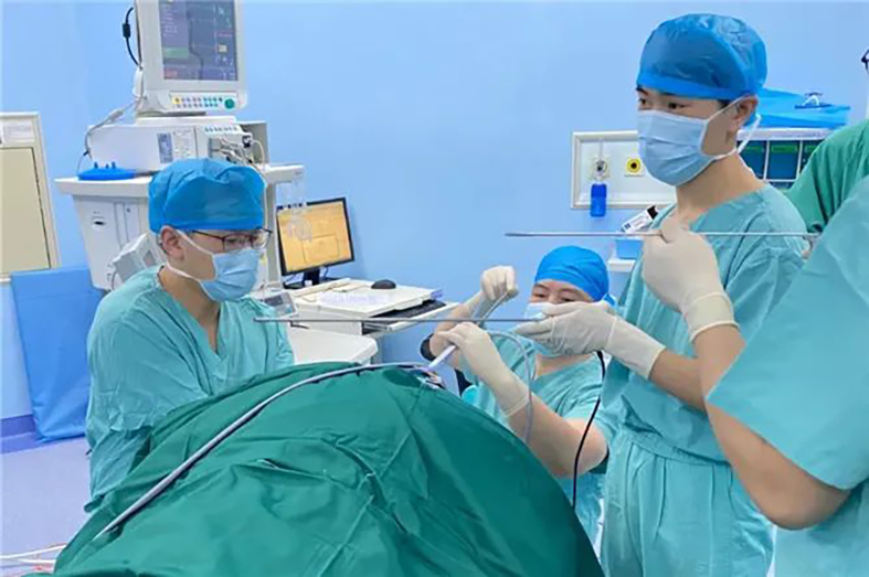 在多次尝试,难以在电子胃镜下取出这个瓶盖后,医生决定行硬性食管镜下食管探查+异物取出术。耳鼻喉科、麻醉与围术期医学科通力协作,对男子气管插管全身麻醉,用硬性食管镜成功将异物取出。