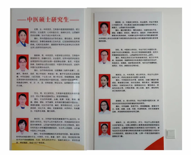 “中医院从2016年开始陆续引进高层人才,目前共有9名硕士研究生,一个也没有流失,并已逐步成为各科室的带头人。在全市的中医院中,万荣中医院的研究生数量也是运城市中医院引进硕士研究生最多的一家。万荣县要把中医药做成一个支柱产业,必须先把中医的队伍做大,把乡村的中医培养起来,通过三至五年的努力,把中医的队伍扩大一倍以上,这样就能把中医药变成万荣县的支柱产业,对当地的发展能作出大的贡献。”万荣县中医院院长陈俊青说。