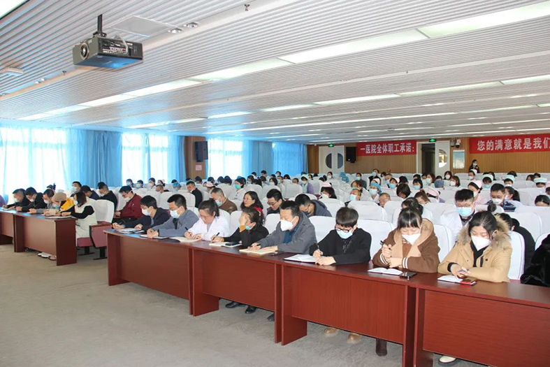 大同市第一人民医院领导班子成员、临床科室主任、护士长及各职能科室负责人参加会议。(陈昕)