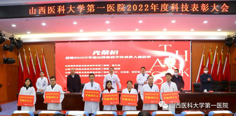 2月8日,山西省医院协会理事单位——山西医科大学第一医院召开2022年度科技表彰大会。院党委书记徐钧讲话,院长张瑞平主持会议。全体院领导、中层干部及部分优秀科技工作者参加会议。