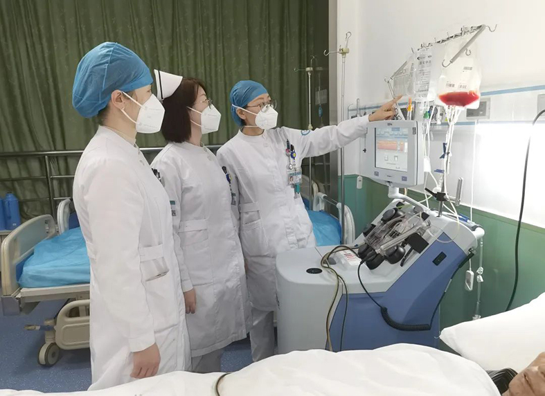 在贺建霞带领下,史殷雪、副主任护师李艳萍、岳旭丽相互配合,使用血液成分分离机为该患者进行治疗性血小板单采去除术,历时3小时顺利结束。整个治疗过程中,患者生命体征平稳,治疗后复查血小板降至485×109/L。
