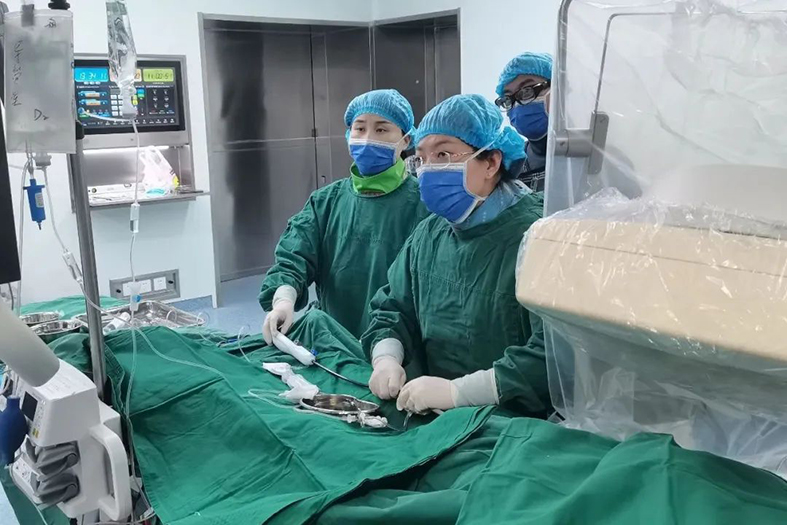 由于患者年龄偏大、基础病情复杂严重,体重也只有36kg,全身状态较差,并且因房颤服用抗凝药,常规起搏器植入出血感染风险极大。在分析患者情况和充分考虑患者及其家属意愿后,心律失常科马瑞芳主任团队为患者量身定制了缜密的手术方案,采用Micra无导线起搏器进行植入。