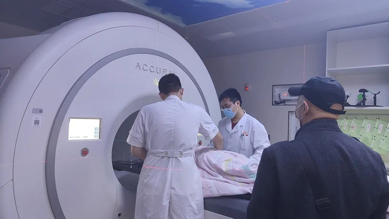 螺旋断层放疗系统属于最新一代的放射治疗设备,是直线加速器和螺旋CT扫描机的完美结合,TOMO治疗方式像螺旋CT扫描一样,放射线可以逐层围绕肿瘤进行360度旋转聚焦照射,提高了照射剂量和剂量分布的均匀性,同时可以更有效地保护正常组织与细胞,从而降低了放疗后口腔黏膜炎、放射性肺损伤、消化道损伤等严重并发症。同时,TOMO放疗范围广泛,除了能完成全身各部位的精度放疗外,是目前唯一可以一次完成全中枢照射、全骨髓照射和多个靶区同时治疗的放疗设备。在建设国家区域医疗中心的大背景下,山西白求恩医院 同济山西医院在省内率先引进TOMO放疗设备,为肿瘤患者带来了新治疗方式。