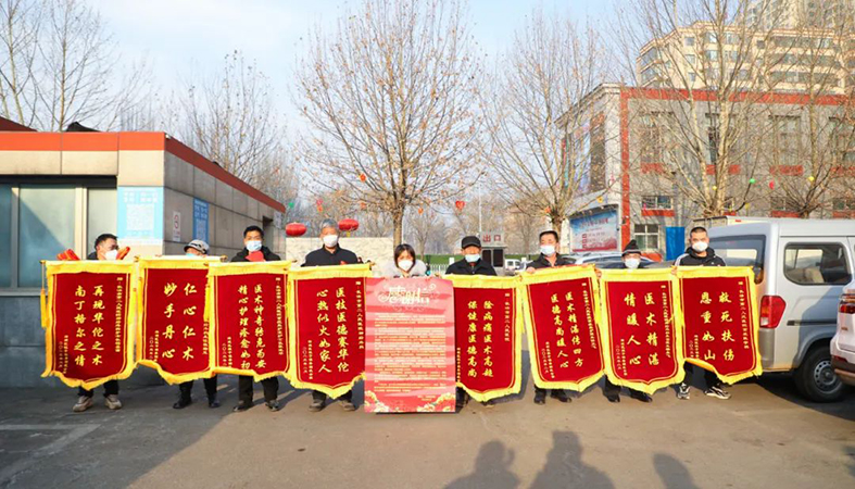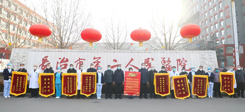 2月6日上午,山西省医院协会理事单位——长治市第二人民医院院区一支特别的队伍引起大家的注意。一位七十多岁的婆婆在友人的陪同下向该院神经外科和重症医学科送来八面锦旗。他们喜气洋洋、敲锣打鼓,八面金字锦旗飘扬在队伍的最前方。