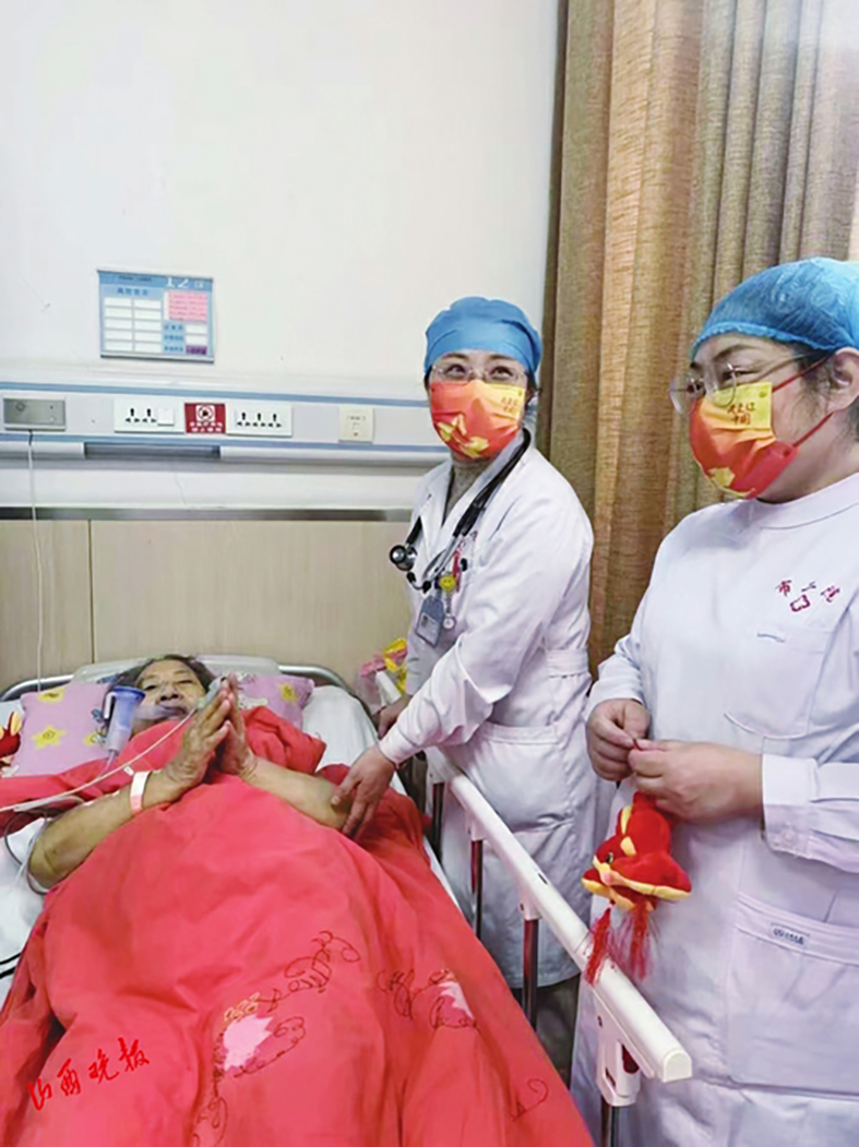 知道院长来了,正在病房里照顾母亲的胡先生从病房跑出来握住董钰柱的手,激动地说:“市二院带给我太多感动了!”原来,就在1月20日,也就是农历腊月廿九,胡先生90岁高龄的母亲发起高烧,他带着母亲去了省城多家医院,最终在朋友介绍下,胡先生的母亲被太原市第二人民医院重症舒缓科收下。