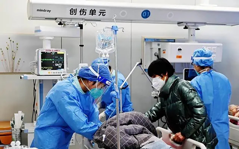 12月7日“新十条”出台之后,该院迅速把工作重心从防控感染转到医疗救治上来,“保健康、防重症”。发热门诊,应开尽开,诊室从9间扩大到达到53个诊位。发热门诊最高峰每天100多人次,内科系统和外科系统联合救治,加强综合重症医学科、专科重症病区及可转化重症床位人员及设备配置,实有重症床位214张,可转化重症床位74张。成立重症救治专家组,建立重症患者会诊机制,每日召开医疗救治调度会,畅通急诊绿色通道,急诊患者应收尽收”“应治尽治”,急诊高峰时达200多人次。2022年12月10日至2023年1月6日,不到1个月,共收治住院患者3579人次。