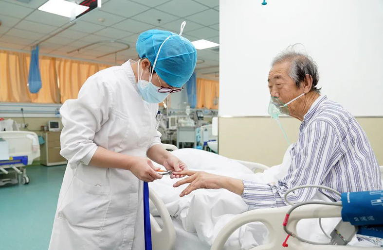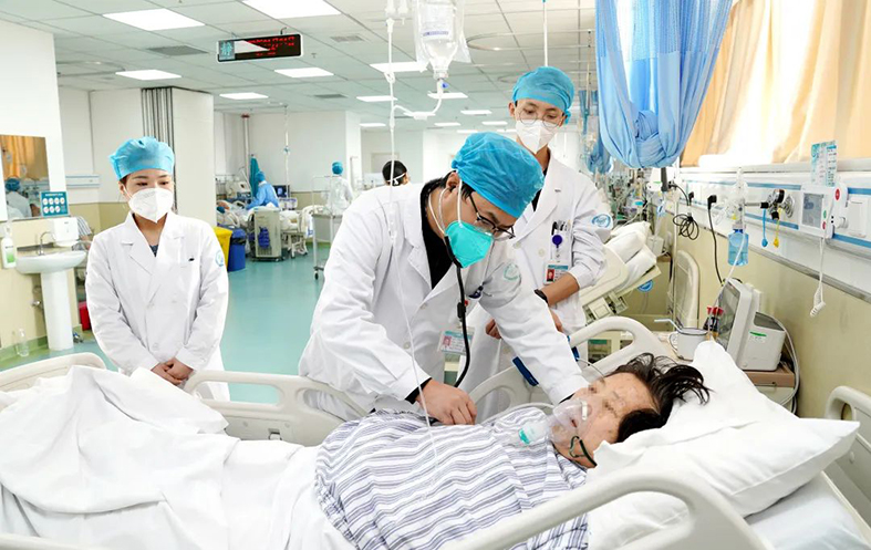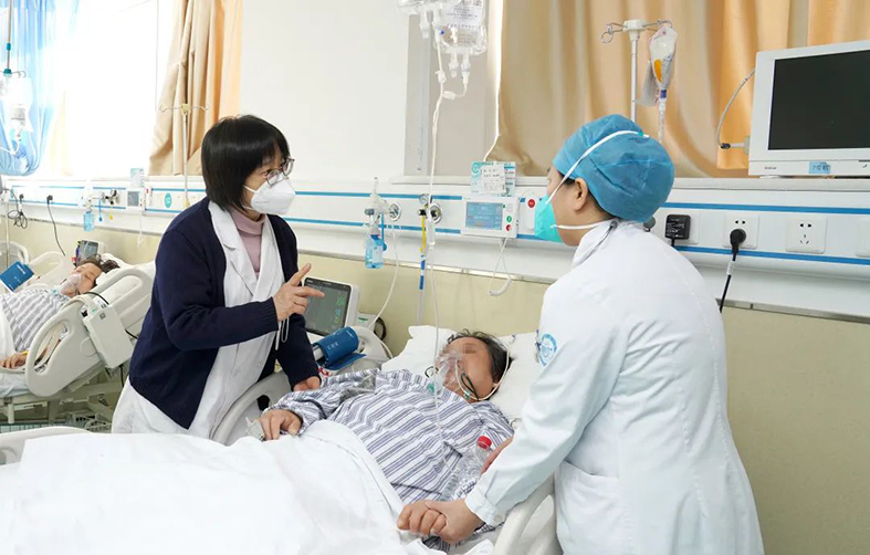 入院时,范大爷气道阻塞、意识丧失,命悬一线,值班医护人员立即通畅气道,建立液路,给予急救药物。经过40分钟的抢救,患者神志转清,呼吸趋于平稳。之后,主管医师又完善检查化验,医疗组讨论分析病情,动态监测病情变化,请兄弟科室协助诊治,协调呼吸机支持呼吸。经过十天的全力抢救,范大爷生命体征趋于平稳,于2023年1月6日转至普通病房继续巩固治疗。