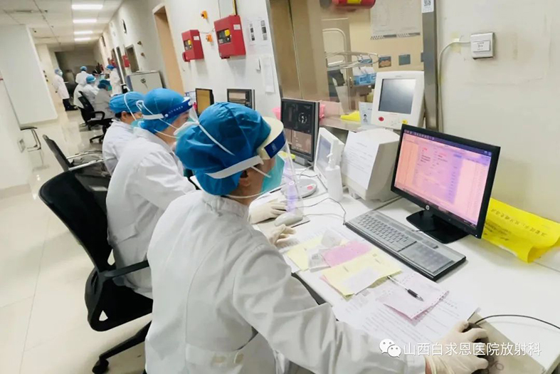 此时,作为国家区域医疗中心建设单位,山西白求恩医院积极践行“将重心从防控疫情转向医疗救治,全院职工齐心协力守卫人民健康”,全院科室上下一心,对受新冠病毒困扰的患者做到“应收尽收”。随之而来的,是需要做胸部CT扫描的患者人数成倍数地增长。