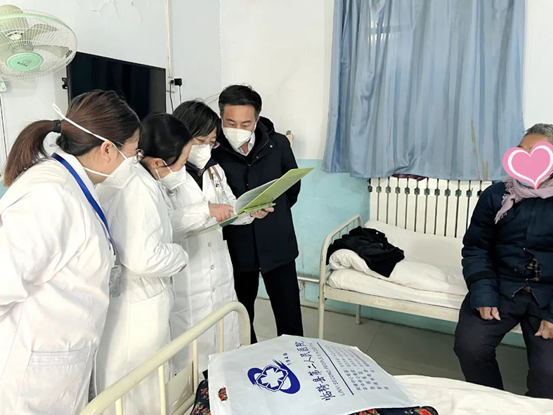 2023年1月6日,山西省医院协会理事单位——临猗县人民医院组织新冠病毒感染诊治专家组深入孙吉镇、北辛乡、北景乡三个中心卫生院和北辛乡敬老院,对老年患者进行查房,对医疗救治工作进行专业指导。
