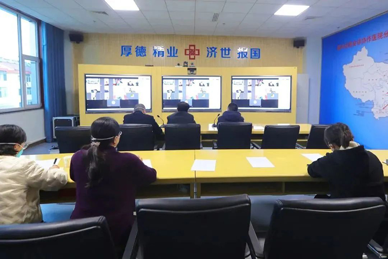和平医疗集团成员单位在线上参加会议,集团办公室、医务科、护理部、互联网医疗部等负责人列席会议。(文/张帆 图/贾灏)