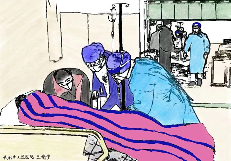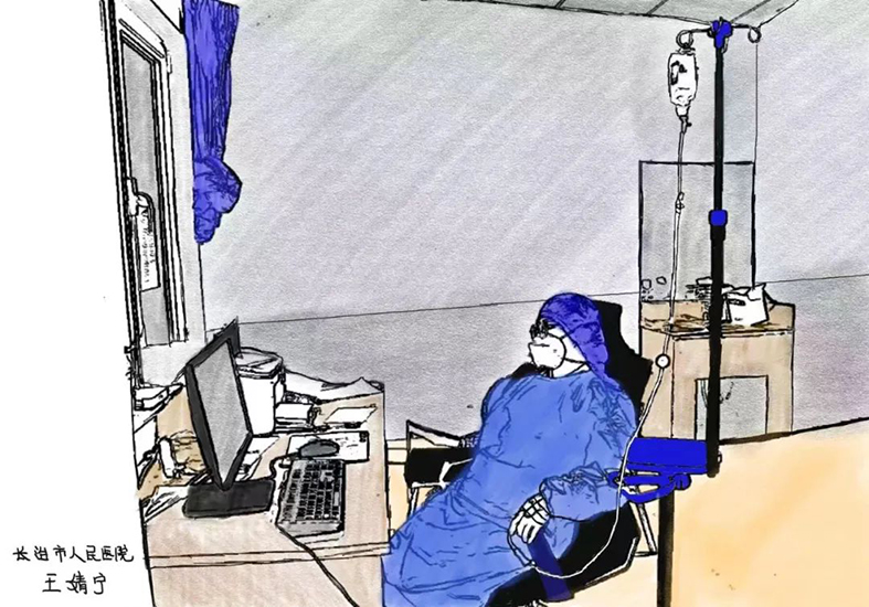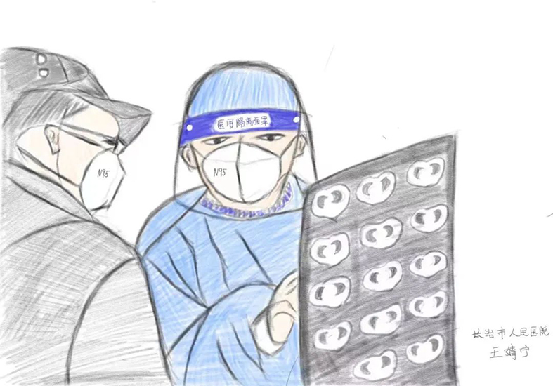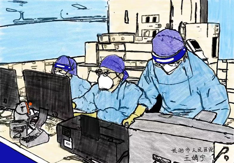 这十副漫画是山西省医院协会理事单位——长治市人民医院介入血管外科护士王婧宁利用业余时间加班加点完成的。她一边工作,一边创作,有的时候甚至到深夜3点还在作画,将医护人员工作中的一些情景形象生动地描绘了出来,富有感情。在此,让我们对王婧宁护士的辛勤付出表示衷心的感谢!祝奋战在一线的所有医务工作者新年快乐!