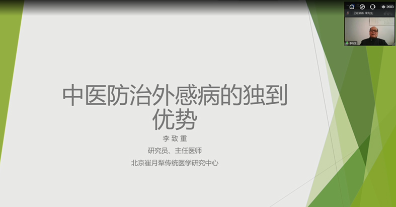 ▲柴瑞霭教授从中医抗疫的优势谈救治外感热病的重塑。