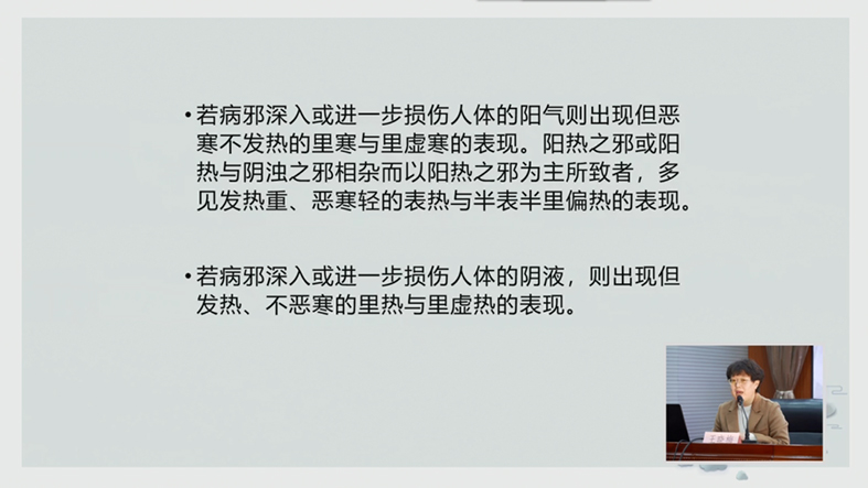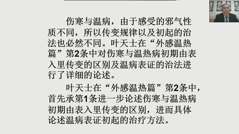 ▲刘景源教授论述伤寒与温热病初期的辨治之别。