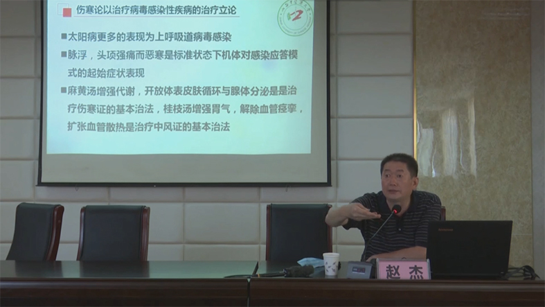 ▲赵杰教授围绕六经辨证治疗感染性疾病思路作讲。