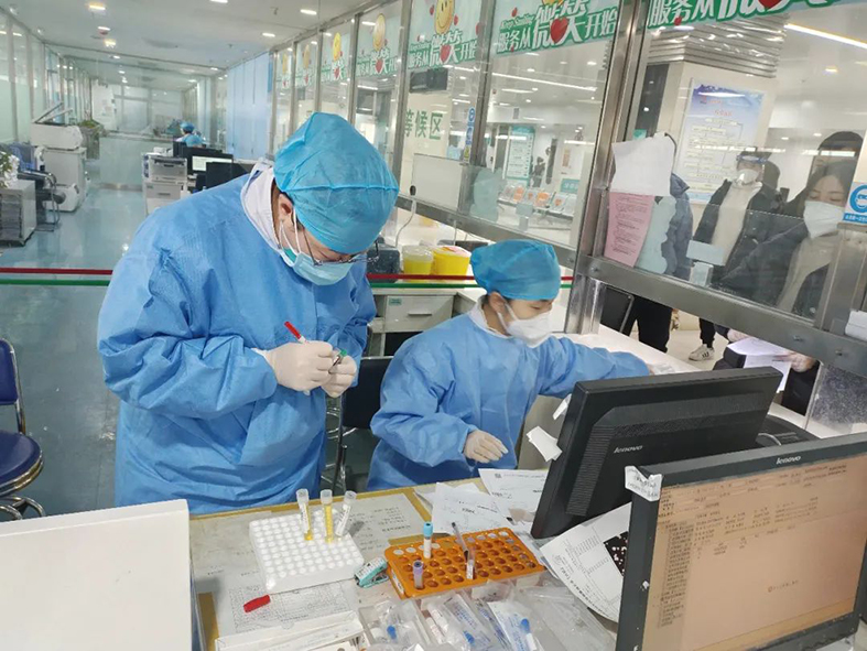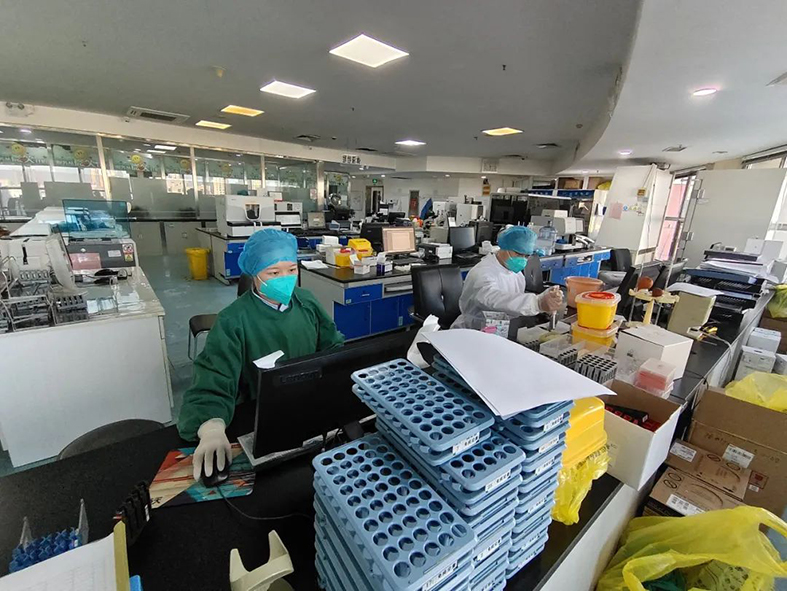 检验大厅职工被感染的人数每天都在增加。共有9名队员的收检组,在短短几天时间里仅剩下组长薛晶和组员郭超两人在坚守。怎么办?