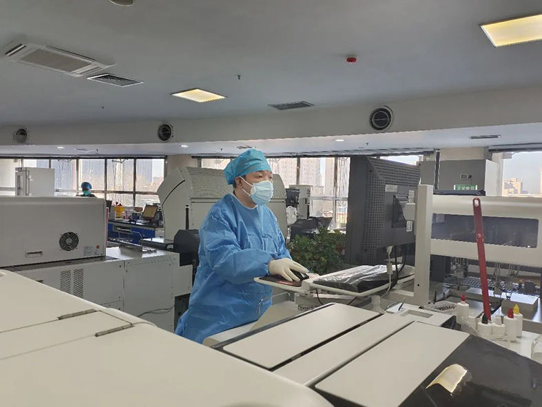 今年刚刚毕业分到检验科的王涛、冯剑南、马伊娜以及从临床实验室刚转入检验科的杨宇婷、张文倩、王梅琳几位年轻的同志时时冲在最前面,哪里需要就冲到哪里,为科室解决了许多燃眉之急。