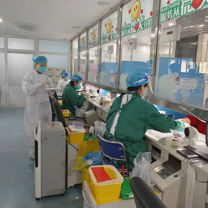 “我还能参与夜班工作”,冯育英、张红英、董瑞鸿三位老职工再一次站了出来。检验科一直以来比较关爱老职工,年龄到了50岁的老职工是不参与夜班工作的,但此时的她们勇担重任,成为科室的主力军。
