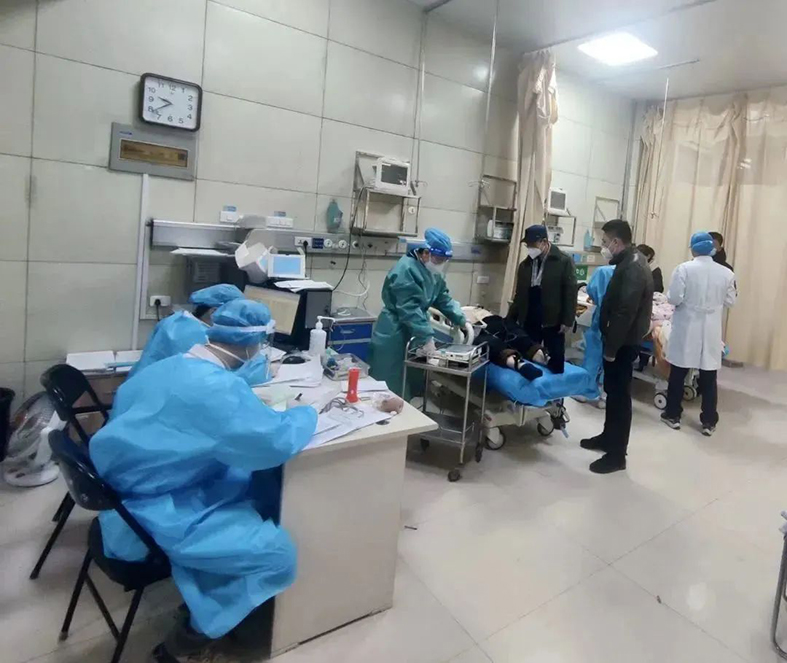 “大夫,我妈发烧呕吐好几天了,能不能给看看?”“大夫,我父亲85岁了,血氧不好,我们能不能来诊?”………近来,太原市人民医院急诊科电话铃声不断,分诊台问询声不停,医护人员用早已嘶哑的声音耐心回答每一个电话,每一个询问。抢救室里危重患者急剧增多,楼道、诊室、观察室、抢救室随处可见病人,有吸氧的,有正在采血的,有交流病情的,有正在抢救的,还有正在治疗的;到处都是医务人员忙碌的身影。这些便是急诊科最近的常态。