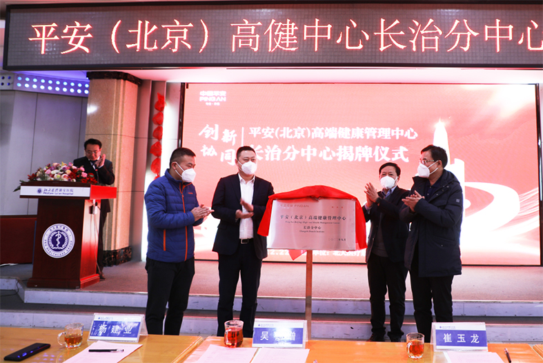 吴有增、崔玉龙、富翔宇、杨建业共同为“平安(北京)高端健康管理中心长治分中心”揭牌。
