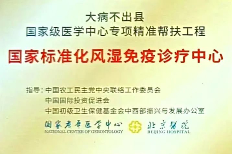 据悉,“国家标准化风湿免疫诊疗中心”工程建设项目是“‘大病不出县’国家级医学中心专项精准帮扶工程”的重要组成部分。帮扶工程是在中国农工民主党中央联络工作委员会指导下,由中国初级卫生保健基金会中西部振兴与发展办公室、中国国际投资促进会振兴与发展工作委员会、智慧健康投资促进工作委员会联合一批国家级医学研究中心及国内知名医院共同发起,着力于推动优质医疗资源下沉,以实现“大病不出县”为目的的医疗卫生精准帮扶工程,同时致力于打通分级诊疗最后一公里,助力于加快实施健康中国行动。帮扶工程已经在国内10多个省(市、自治区)落地各类医学中心数十个。“国家标准化风湿免疫诊疗中心”工程建设项目,由中国初级卫生保健基金会中西部振兴与发展办公室、中国老年保健医学研究会、北京医院于2022年4月共同启动。